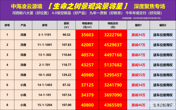 【津南海教园】中海长林郡,洋房推出5套特惠房。