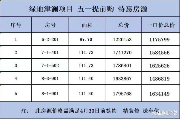 【津南辛庄】绿地津澜,洋房推出5套特惠房。
